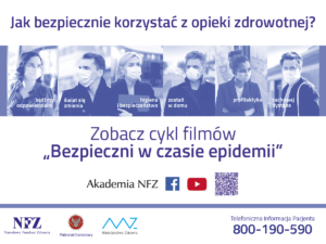 Drodzy Pacjenci. Przed nami trudny okres jesieni. Jesteśmy otoczeni masą informacji z różnych źródeł. Nie zawsze sprawdzonych, często mało wiarygodnych. Dlatgo tym bardziej zachęcamy do oglądania filmów przygotowanych w ramach Akademii Pacjenta NFZ. Informacje w nich zawarte są  oparte na wiedzy medycznej. Są rzetelne i wyważone. Każdy z 10 odcinków dotyczy właściwych zachowań w różnych obszarach codziennego życia w dobie pandemii. Zaproszeni do projektu eksperci odpowiadają na najczęściej zadawane pytania, wypowiadają się m.in. Bartłomiej Chmielowiec, Rzecznik Praw Pacjenta, prof. Zbigniew Gaciong, rektor Warszawskiego Uniwersytetu Medycznego,  dr Paweł Grzesiowski, a także znani dziennikarze i przedstawiciele organizacji non-profit: Ewa Błaszczyk czy Tomasz Rożek.